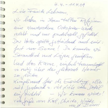 Hier finden Sie einige Einträge von Gästen, die bereits in unserem Ferienhaus ihren Urlaub verbracht haben: